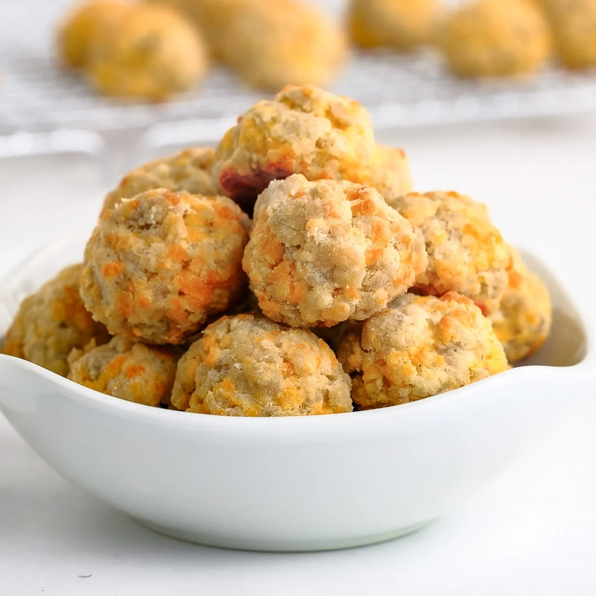 These easy sausage balls with Cheddar are easy to make with baking mix. They are great for appetizers or for breakfas...